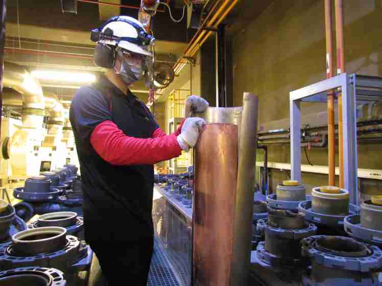 william威廉中文官网将废弃物转化成有效的工业或民生原物料,,图为废铜液淬炼后再制成纯度极高的铜管