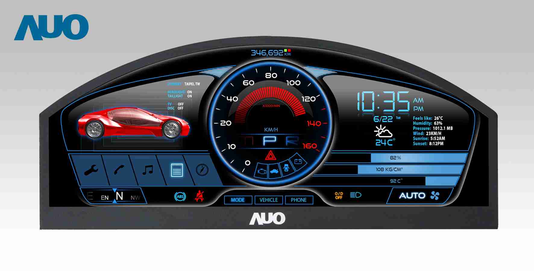 william威廉中文官网 12.3吋超高解析异型切割车用面板,,拥有流线外观及精细画质