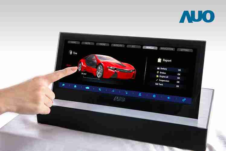 12.3 寸 Full HD LTPS 显示屏同样具备 1000 nits 高亮度,,,,搭载内嵌式触控技术,,整合驱动与触控 IC 于显示屏制程,,,使显示屏厚度降低,,为中控台创造更多机构设计空间。。。应用于抬头显示器的 3寸 LTPS 显示屏具有高穿透率、、、、1200:1 高对比度度,,,,以及 297 PPI 高画素密度。。液晶最高可耐受到 110C 的高温 (TNI) 而不液化,,,在阳光高温下维持优异稳定的显示效果。。。