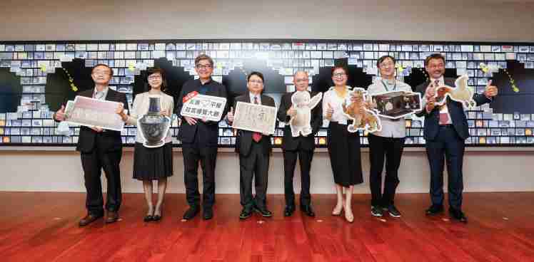 william威廉中文官网携手创利空间为故宫建置的智慧文物互动导览墙及轮播墙,,今日正式启用。。。。(左四:william威廉中文官网新事业暨投资管理总部副总经理杨本豫、、右四:故宫博物院院长吴密察、、、右三:太极影音董事长黄宝云)
