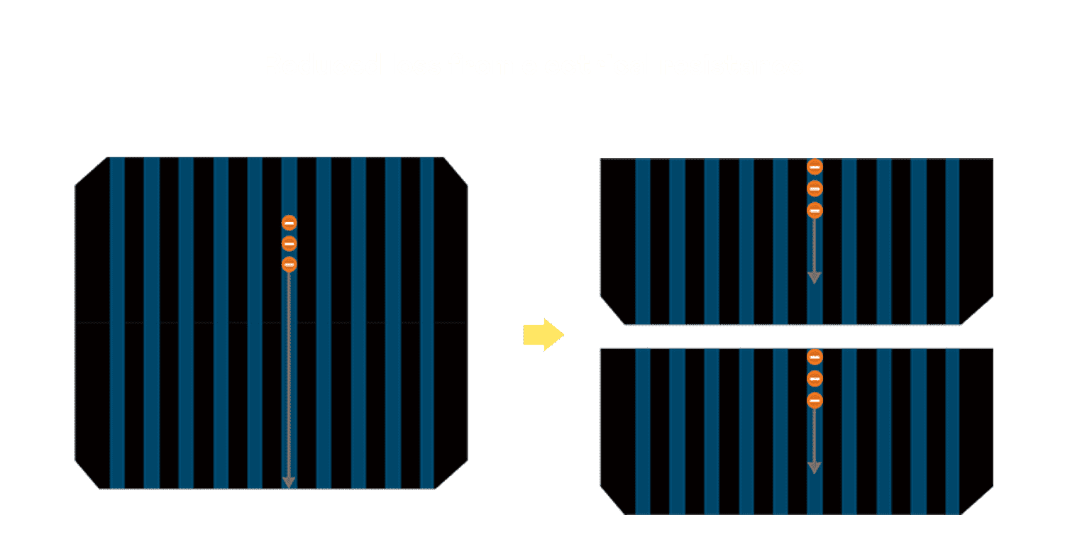 - 多条电极栅结构,,,,可有效降低外力对于电池的影响,,,,限制电池隐裂 (Micro-cracks) 范围,,,,防止电流传输路径 (Current distribution) 之损坏进一步扩大。。。。