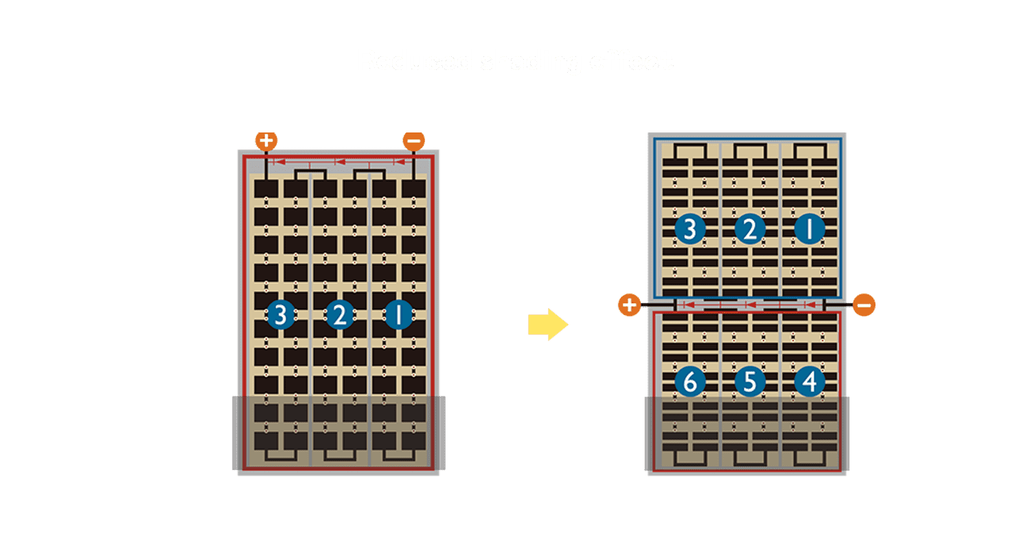 - 结合半切电池,,降低遮阴影响、、、、提升模组抗隐裂能力、、、、并减少电阻损耗,,,,进一步提升模组发电效能。。